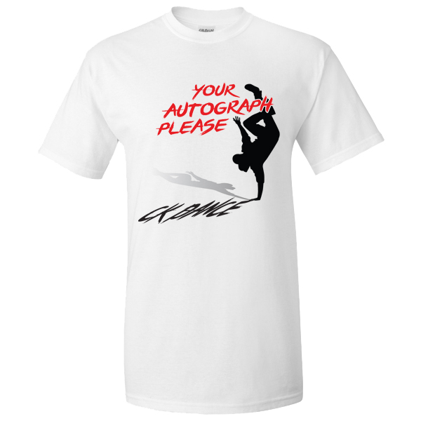 Available in White, Gildan brand short sleeve, long sleeve and crew neck sweatshirt. Has roster of performers on the back.
