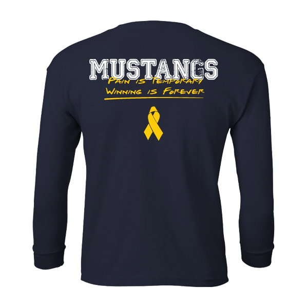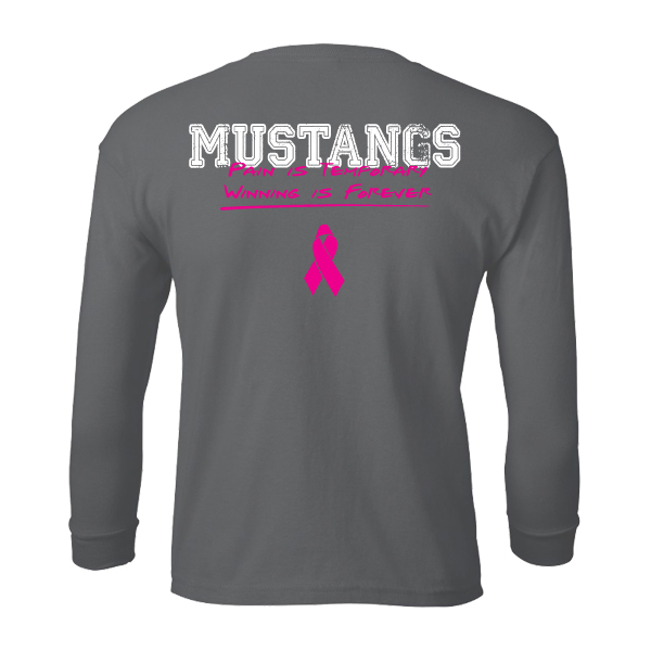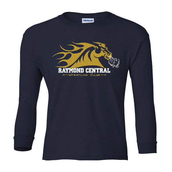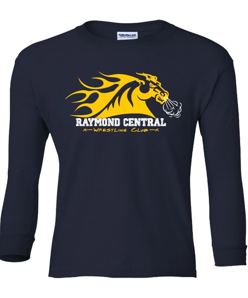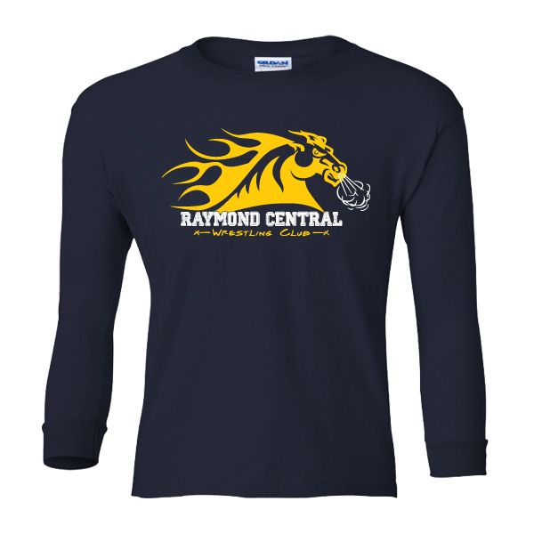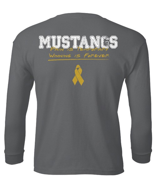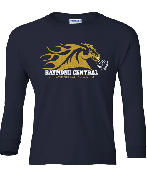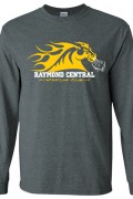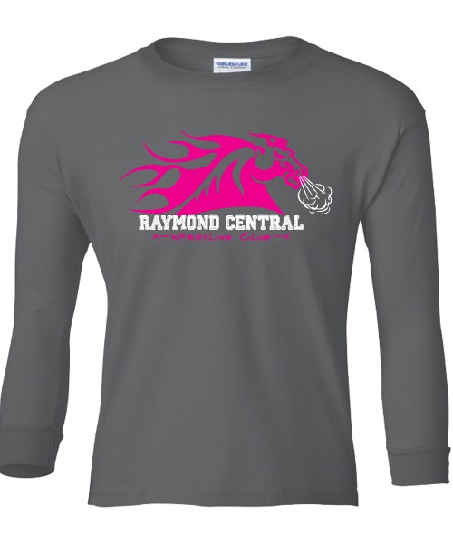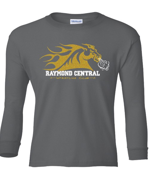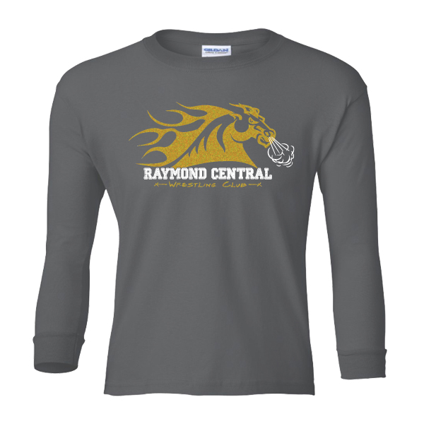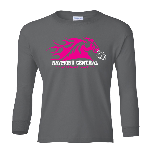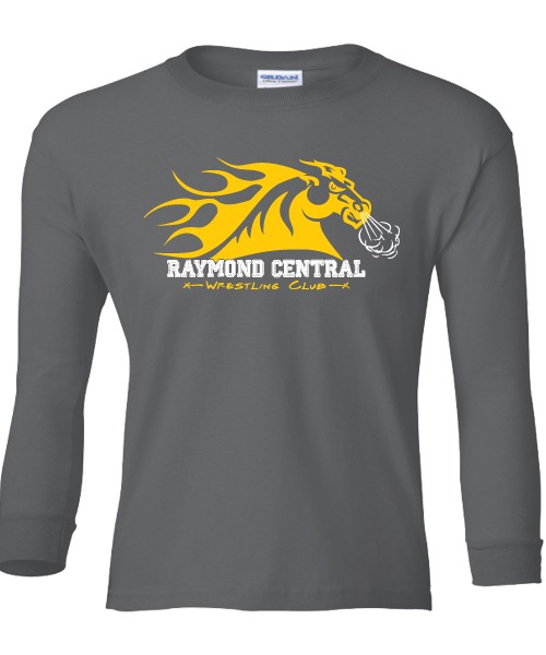 The Adult LS Tee is 50/50 Cotton/Poly. The Youth LS Tee is 100% Cotton. The adult grey shirt is Heather Grey. The youth grey shirt is Charcoal. Gildan brand. For Adult sizes, click here